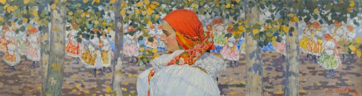 na obálce > Joža Uprka: Vázání šátku (výřez) / 1910 olej, plátno / 47,5 × 170 cm / Slovácké muzeum v Uherském Hradišti