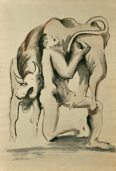 Emil Filla: Théseus nesoucí krétského býka / 1938 / lavírovaná kresba černou tuší,