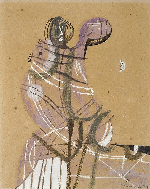 Zdeněk Sklenář: Milenci / 1943 / kombinovaná technika na kartonu / 26,5 x 21 cm /