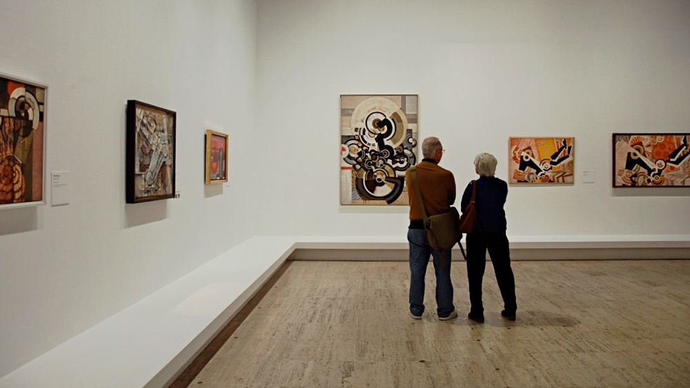 Mánesu v roce 1946 Národní galerií v Praze. Vedle Velký akt (Plochy podle barev), 1909-10, olej.