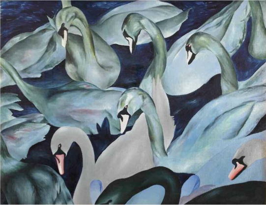 Jiří David: Labutě v noci / 1991 / olej na plátně / 170 x 220 cm