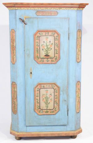 Malovaná skříň, polovina 19. stol., dřevo, 187 x 140 x 55 cm, vyv. cena: 2 900 Kč