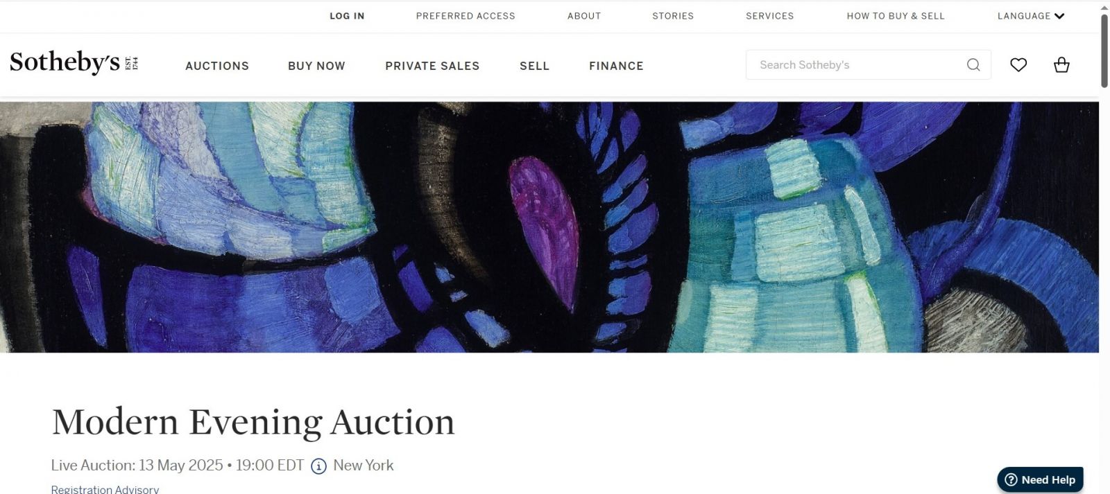 Printscreen z webových stránek aukční síně Sotheby’s s propagačním bannerem k večerní dražbě 13. května 2025 (pořízeno 22. 4. 2025). Zdroj: Sotheby’sVýřez obrazu nezachycoval očekávatelnou signaturu s dominantním K na začátku jména, nicméně bylo téměř stoprocentně jasné, že půjde o významné dílo Františka Kupky ze série Traits, plans, profondeur (Čáry, plochy, hloubka), jejíž jinou špičkovou ukázku spravuje Národní galerie v Praze (inv. č. O 11164) nebo pařížské Centre Pompidou. Jistotu do případných spekulací vnesl katalog, který osvětlil jak umělecko-historickou genezi malby, tak její zajímavou vlastnickou historii. A navíc odkryl překvapení v podobě dalšího Kupkova obrazu, dokonce s ještě vyššími prodejními ambicemi.
