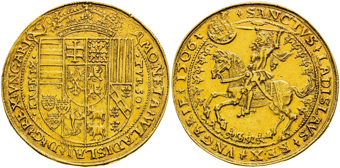 „Extrémně vzácný. Chybí ve sbírce Wiener Münzkabinett. Podle našeho zjištění se na trhu vyskytl pouze jediný kus,“ uvedla aukční síň Macho & Chlapovič bezprostředně před aukcí. Tento reprezentativní exemplář desetidukátu Vladislava Jagellonského, mincmistra Hanse Thursa, z Kremnické mincovny, vystřelil ze 150 tisíc eur na částku ve výší 360 tisíc eur, což v přepočtu činilo 9 milionů korun.