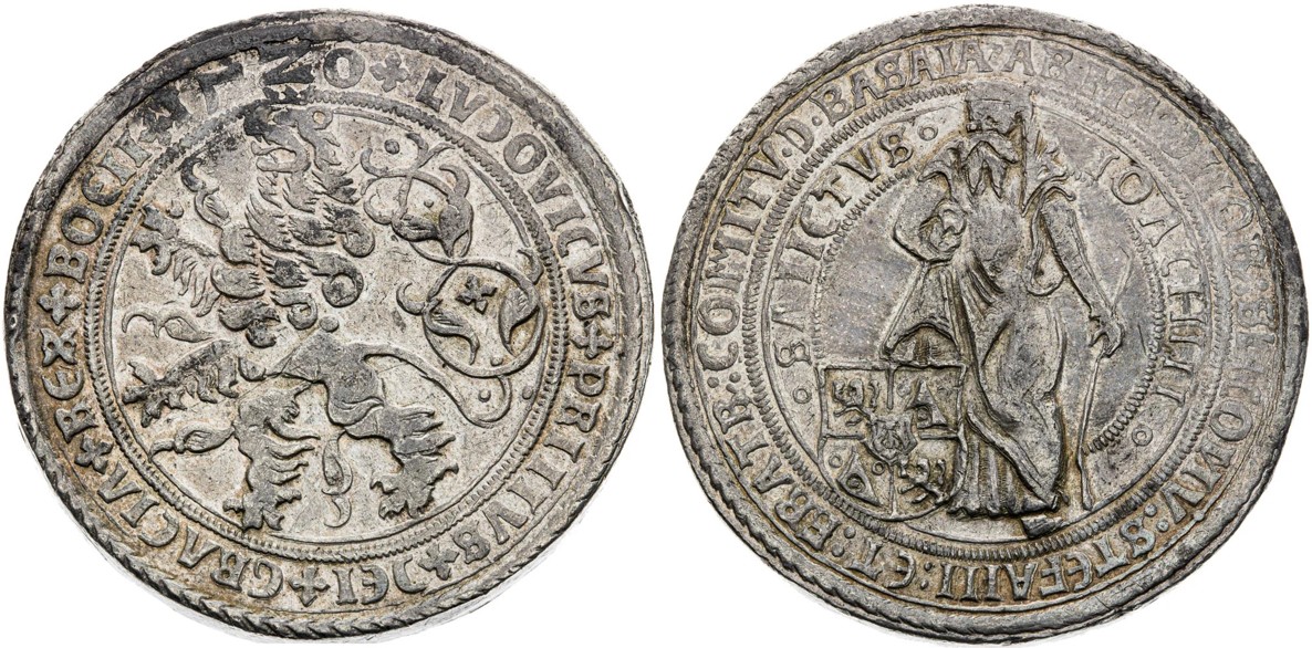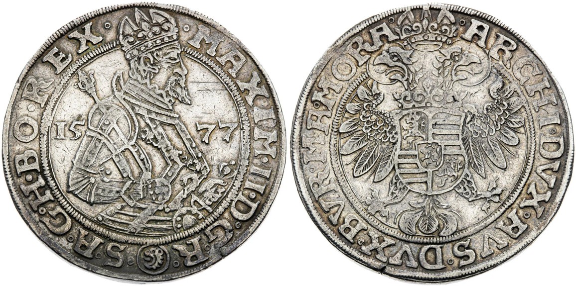 Maxmilián II.Všechny násobky českých tolarů, tzv. tlusté tolary, jsou zpravidla velmi vzácné, extrémně vzácné, až raritní. Druhou stříbrnou mincí, která se zařadila do TOP 10 se stal tlustý tolar / dvoutolar Štěpána Schlika a jeho bratrů s letopočtem 1520. Na sběratelském trhu se pohybuje pouze několik málo kusů. Tento dražený exemplář je navíc vyobrazen v publikaci od Wolfganga Schultena, Deutsche Münzen aus der Zeit des Karls V. Publikovaný masivní dvoutolar, z vyvolávací ceny vystřelil na necelé 2 miliony korun.
