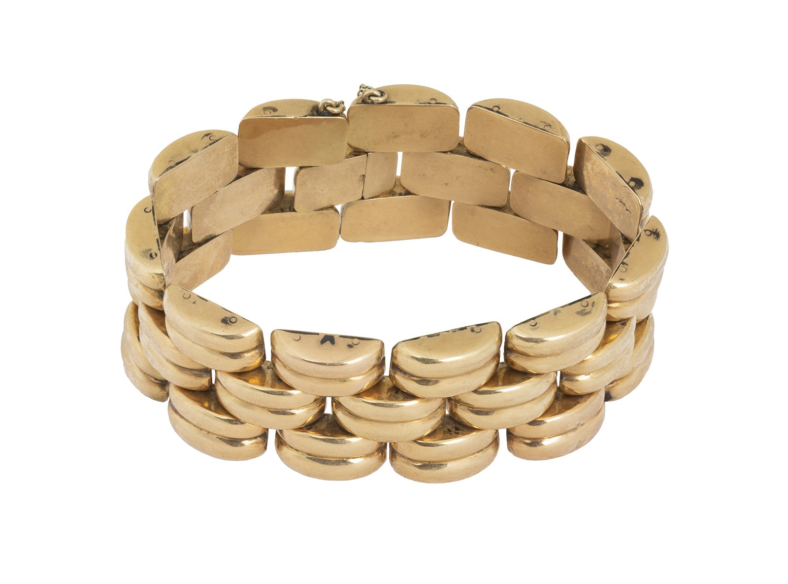 Třířadý náramek (sbírka Evy Petrové),I v případě kolekce výtvarných děl kritičky a historičky umění, publicistky i básnířky Evy Petrové (1930–2011) se dražilo několik desítek předmětů. Šlo především o část sbírky zaměřenou na umělecké řemeslo meziválečného období, například jídelní či nápojové soupravy Ladislava Sutnara nebo Ludviky Smrčkové pro Družstevní práci, koberec Antonína Kybala nebo kolekci zlatých šperků.