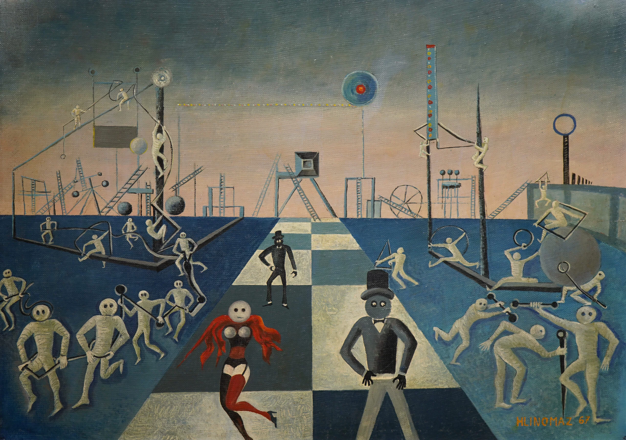 Josef Hlinomaz: Usilovná elektrifikace vesmíru II, 1967,Vynikajících výsledků dosáhla i aukce společnosti Aukce aukcí, v níž sběratelé zakoupili 84 procent nabídky, 215 z 257 děl, za celkovou cenu 14,26 milionu korun. Jedna položka vystoupala nad milion korun, dalších 34 se prodalo za statisícové částky. O milionovou sumu se opět postarala humorná malba Josefa Hlinomaze, který v poslední době především v online aukcích výrazně boduje. Tentokrát šlo o obraz Usilovná elektrifikace vesmíru II ze druhé poloviny 60. let. Zájemci ho vytáhli ze 300 až na 1,1 milionu korun.