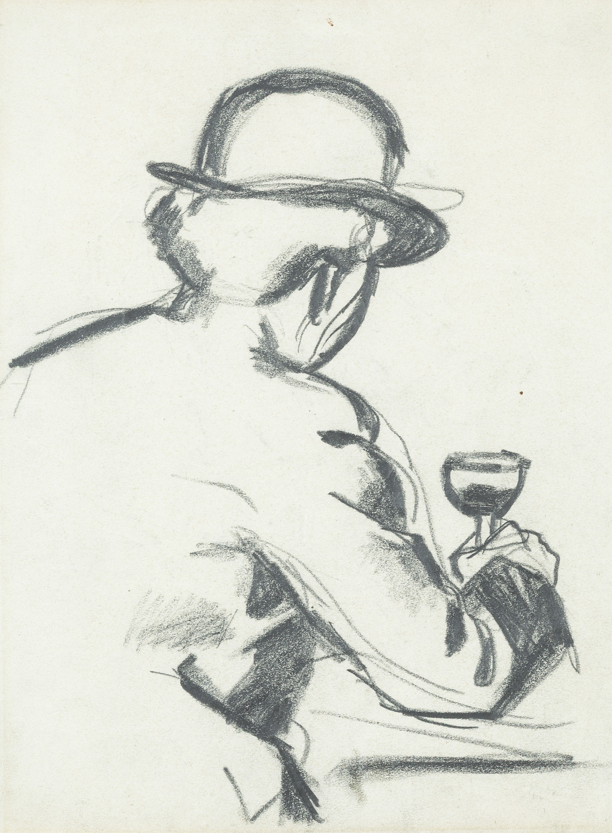 Bohumil Kubišta: Podobizna muže s číší vína, 1910,V katalogu aukčního výběru najdeme i dvojici kreseb Zrzavého přítele a mentora Bohumila Kubišty. V posledním téměř roce a půl trhem prošly pouze Kubištovy grafiky, celková aukční bilance umělcových kreseb se omezuje na necelou desítku (některé z nich dražené opakovaně, především pastel Z Florencie, který se na trhu otočil již pětkrát). Nabízená dvojice kreseb tužkou, Studie muže s číší vína z roku 1910 a o rok starší Paříž, dražena nikdy nebyla. Jejich vyvolávací ceny se pohybují kolem 35 tisíc korun včetně aukční přirážky.