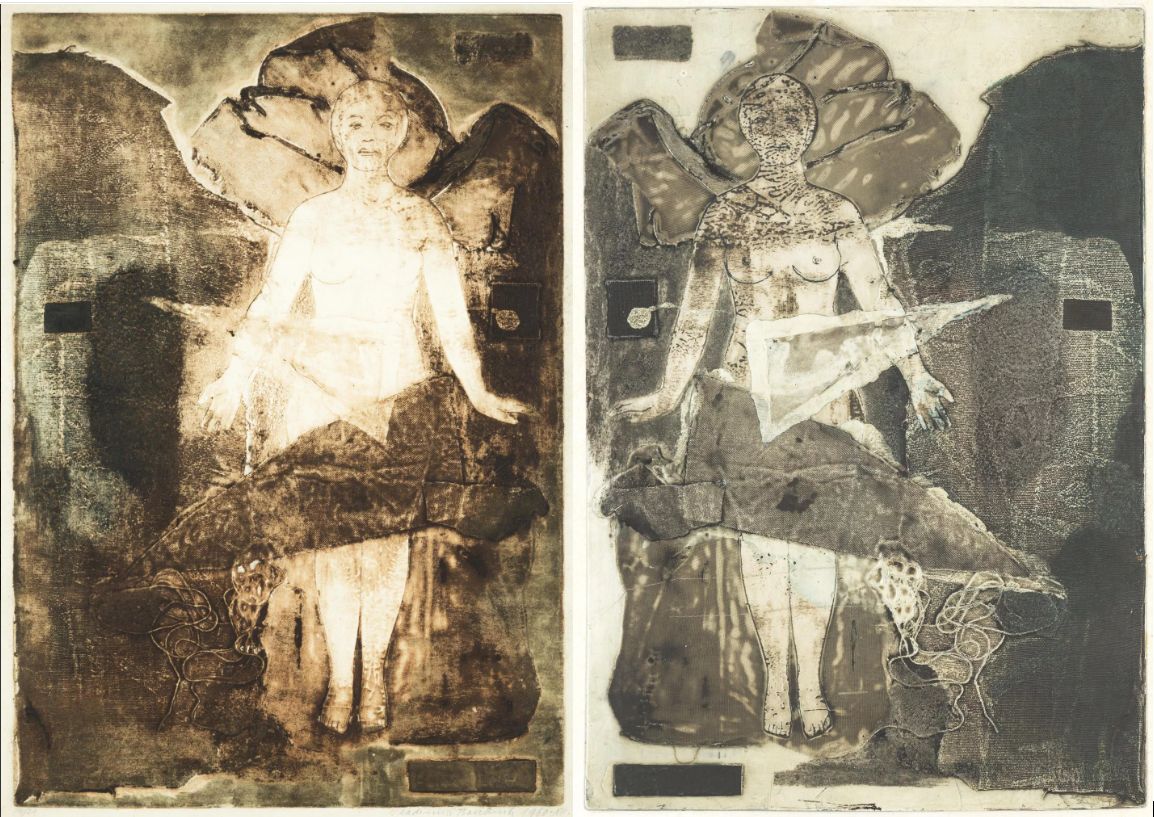Vladimír Boudník: Žena, Freska, 1960,Z prací na papíře nelze nezmínit jště grafiky Vladimíra Boudníka, jichž bude aukční síň dražit hned pět. Nejzajímavější je bezesporu dvojice strukturální grafiky Žena, Freska z roku 1960 a její výrobní matrice z majetku výtvarníka Eduarda Ovčáčka. Tisků z ní vznikla pouhá dvacítka, z nichž dražený je čtvrtý v pořadí. Oba artefakty jsou zarámovány a na zadní straně matrice je připsáno věnování Eduarda Ovčáčka z roku 2019. Aukční síň je začne vyvolávat na částce 305 tisíc včetně provize.