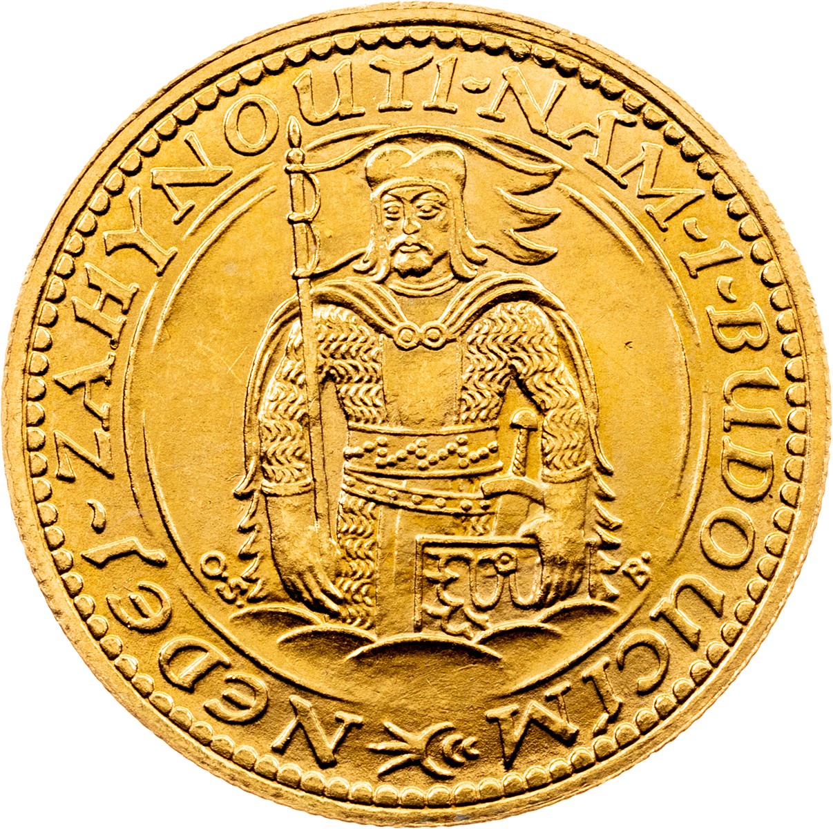 Svatováclavský dukát, 1938,V případě úterní nabídky Galerie Goltzova tvrz pokořila všechny výtvarné žánry jedna zlatá položka, pamětní Svatováclavský dukát. Atraktivitu oblíbené obchodní mince ve výborném stavu zvyšoval rok ražby, 1938, kdy se počet kusů jednodukátů snížil z desítek tisíc v předchozích dekádách na pouhých šestapadesát. Milovníci numismatických unikátů si tak přišli na své. Vyvolávací částka kolem 360 tisíc korun zůstala jen na papíře a vítězný elektronický limit poskočil na její čtyřnásobek. Nový majitel si rozšířil svou sbírku za 1,55 milion korun.