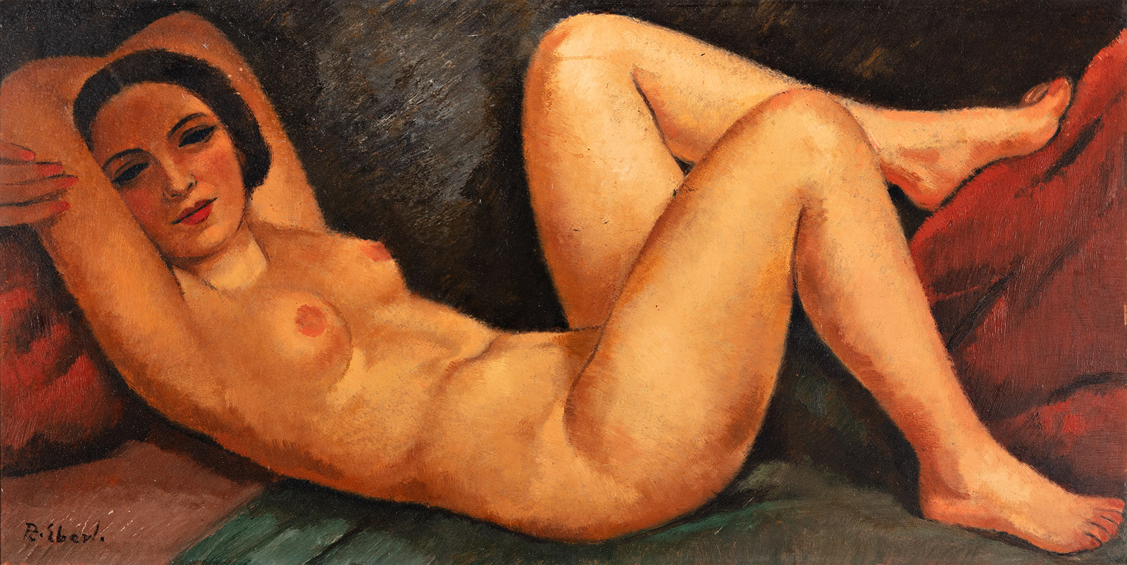 František Zdeněk Eberl: Ležící dívčí akt, kolem 1935,Poměrně výjimečně se dařilo i jeho kolegovi z tzv. Pařížské školy (L'École de Paris), figuralistovi Františku Zdeňku Eberlovi. Jeho velký Ležící dívčí akt ze stejného roku jako Kubínova venkovská idyla reprezentoval malířovo klasické období smyslově nabitých obnažených Pařížanek. Výsledných téměř 770 tisíc korun si našlo cestu do autorovy momentální top trojky jako třetí nejdražší prodej vůbec. Aukčním databázím vévodí dvě Eberlovy položky za dvoj až trojnásobné ceny, v čele s portrétem dobové francouzské galérky Pardáli (Poisses) za více než dva miliony korun (European Arts, 2016).