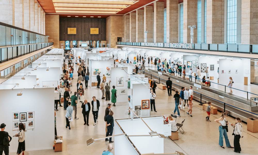 Veletrh Paper Positions Berlin 2025 se konal v hale bývalé letiště Tempelhof.Trend rostoucího zájmu o práce na papíře sleduje i mezinárodní trh, což potvrzuje stále silnější profil veletrhu Paper Positions Berlin – specializované přehlídky, která papír staví do středu sběratelské a galerijní pozornosti. V letošním, devátém ročníku se představilo 65 galerií z 18 zemí a veletrh se vůbec poprvé uskutečnil ve velkolepé hlavní hale ikonického letiště Tempelhof, která svým muzeálním charakterem podtrhla výjimečnost prezentovaných děl.