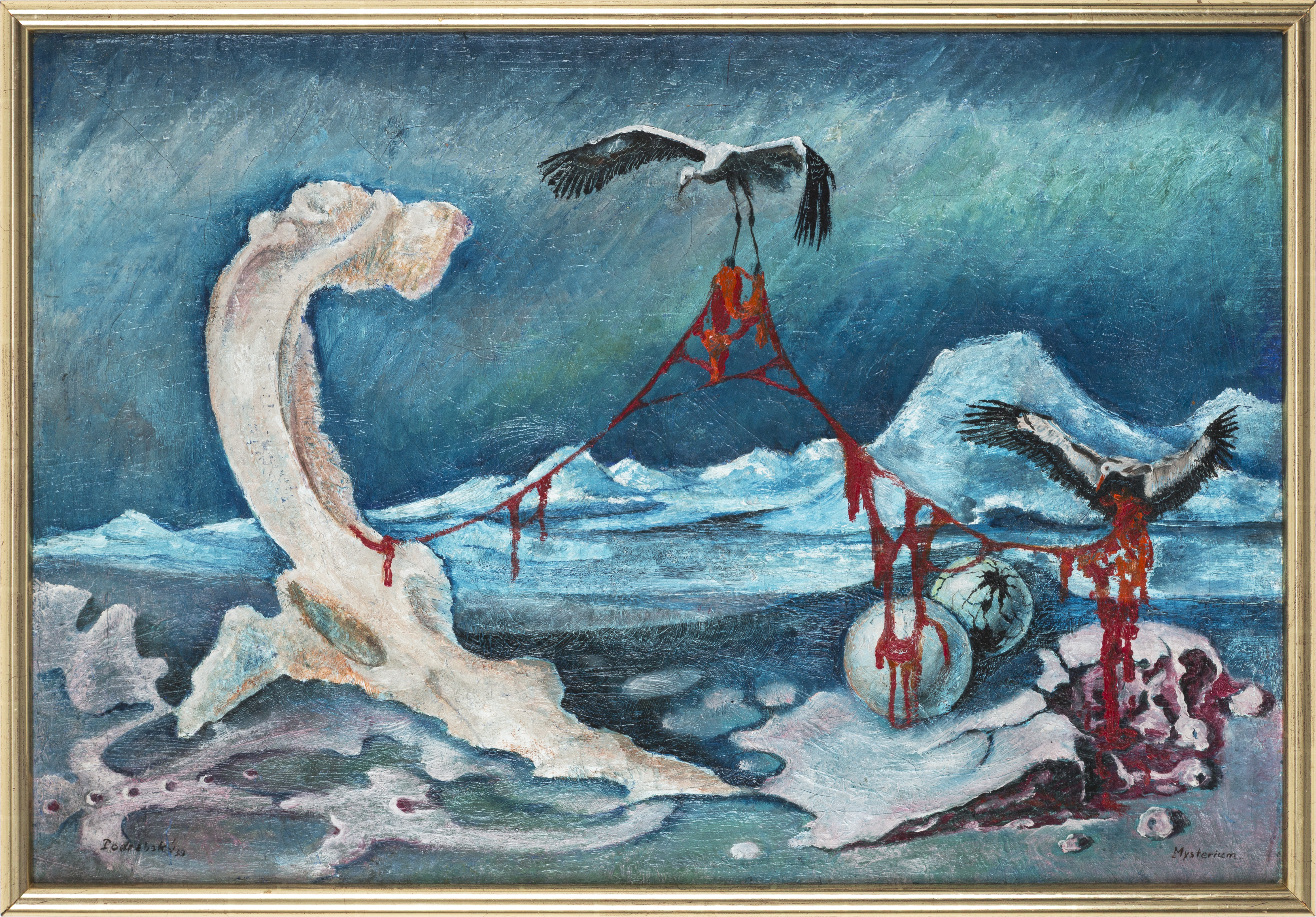 Podrabský Josef : Mysterium 1939Podobnou bitvu svedli účastníci aukce také o obraz Mystérium od Josefa Podrabského. Díla zástupce českého surrealismu, který po druhé světové válce působil jako profesor na gymnáziu v Děčíně, se na aukcích vyskytují jen zřídka. Dosud se dražila jen tři jeho díla. Mystérium do aukce vstupovalo za 61 tisíc korun (včetně provize) a svou příhozovou pouť zakončilo na 320 tisících korunách. Stalo se tak nejdražším autorovým dílem prodaným v aukci.