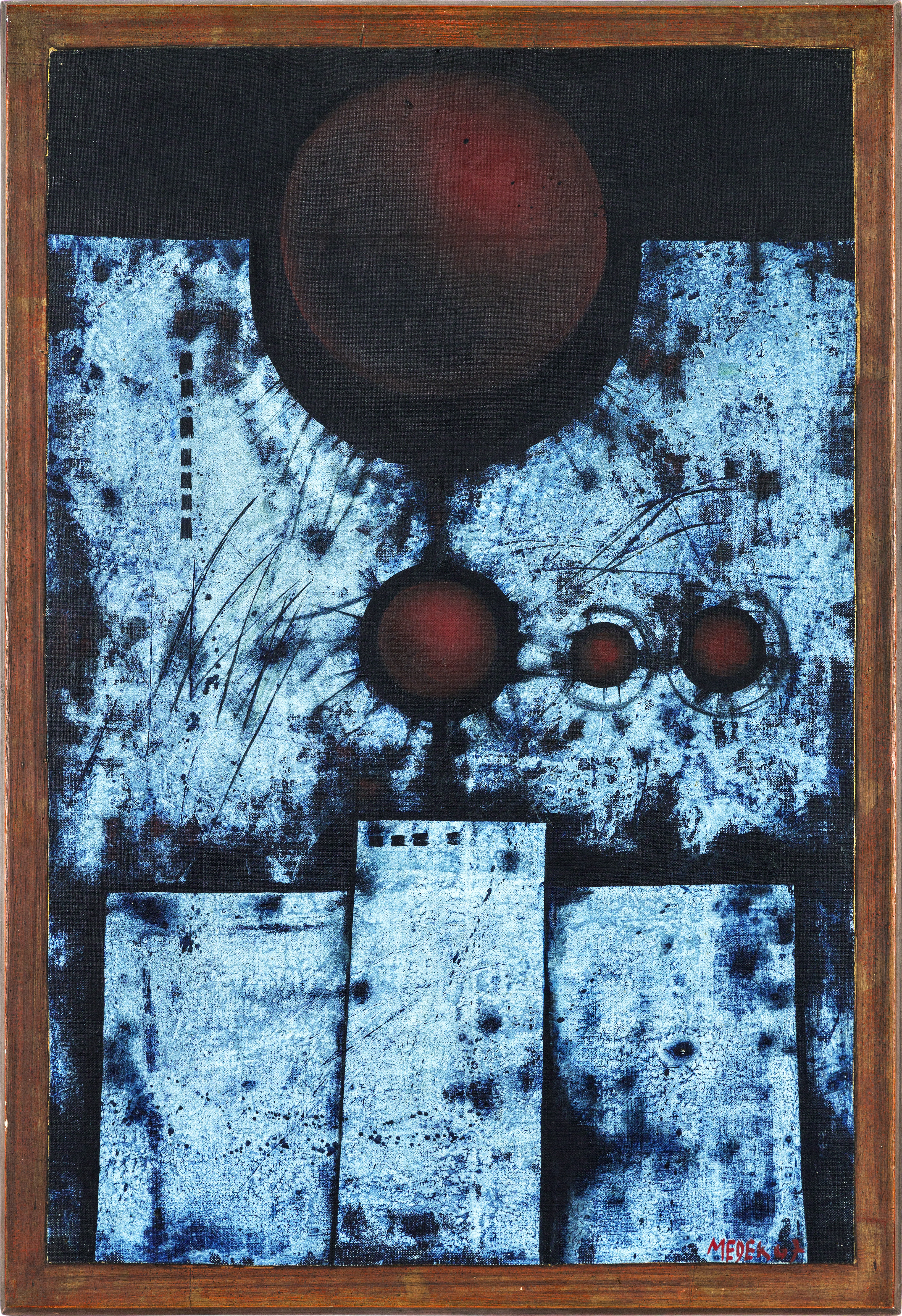 Po loňském půstu, kdy byla na tuzemských aukcích k mání jen jedna malba od Mikuláše Medka, si letos na jaře sběratelé přišli na své. Po Rekonstrukci vegetariána, kterou na začátku dubna prodala Galerie Pictura za 5,2 milionu korun, mohli milovníci Medkova díla zabojovat na dubnové aukci 1. Art Consulting o jeho obraz Bez názvu z roku 1967. Nakonec stačil jeden příhoz, aby se z imaginativního výjevu, kterému dominuje červená koule jako hlava, nebo Měsíc, stal nejdražší obraz aukce. Vítěz za něj utratil 3,7 milionu korun.