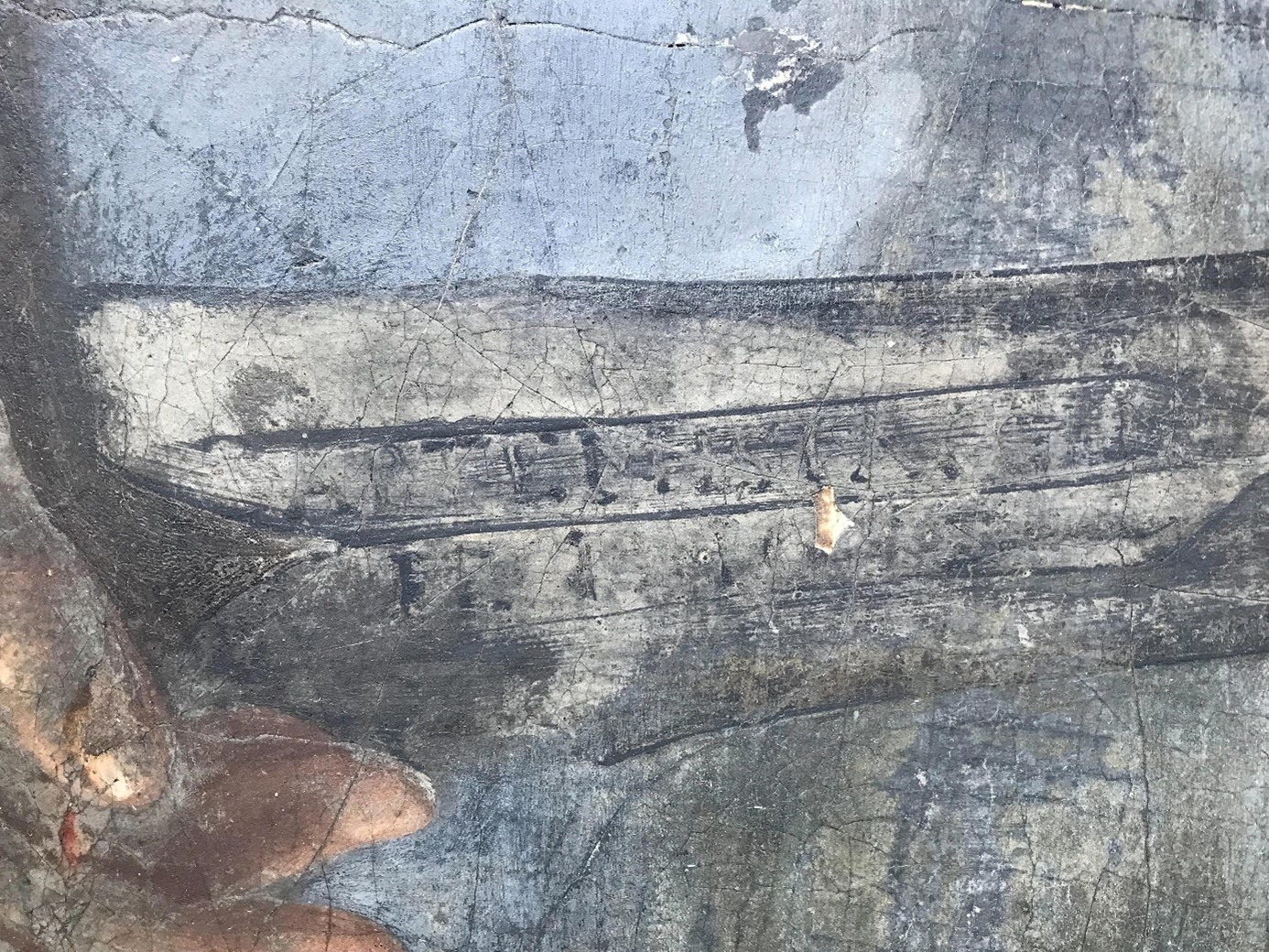 Detail signatury a části datace: ARTEMISIA [...] / FE[C]I[T] 16[…] na horní části Davidova meče (otočeno). Zdroj: Sotheby’sKupec inicioval další podrobná kunsthistorická a restaurátorská bádání, jež se mu notně vyplatila. Předminulý týden se tak obraz mohl pochlubit přesnější datací, konec 30. let 17. století v době autorčina londýnského pobytu, a zejména identifikací uvažovaného objednatele, jímž by měl být sám anglický král a malířčin obdivovatel Karel I. Autentifikačním objevem byl i nález signatury Gentileschi na čepeli Davidova meče, skryté po staletí pod nánosy prachu, zakalených laků a přemaleb.