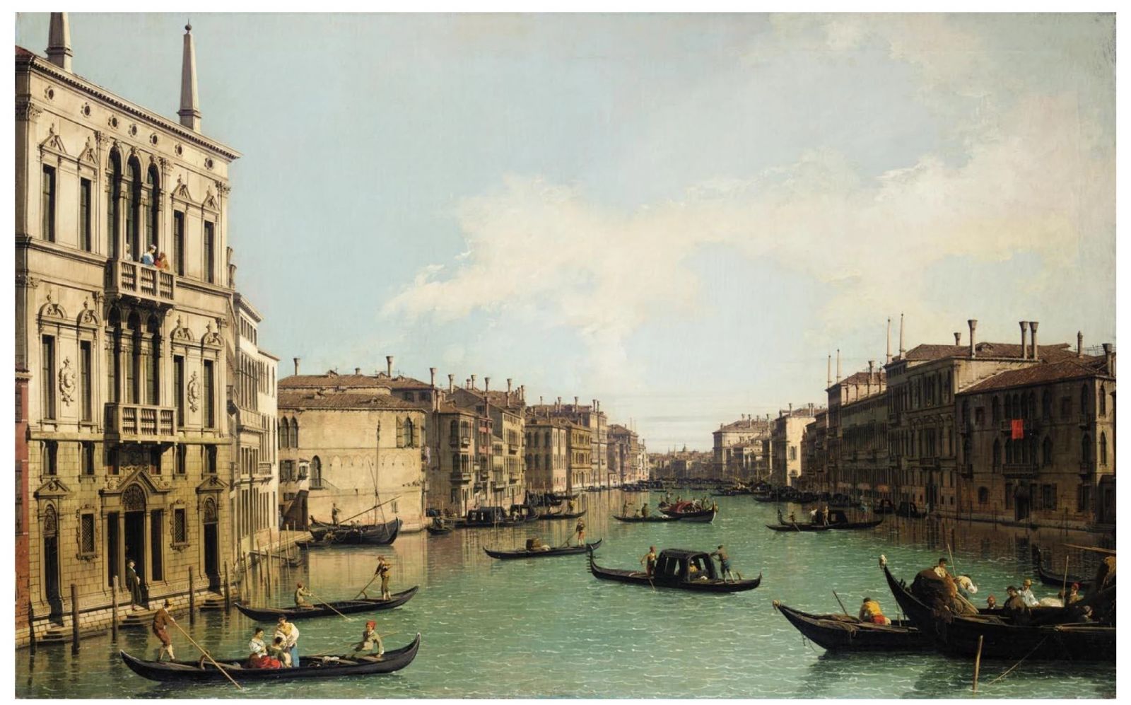 Giovanni Antonio Canal, Il Canaletto: Benátky, Grand Canal, pohled od Palazzo Balbi k mostu Rialto, kolem 1732,Se svým walpolovským pandánem se tak Canalettovy Benátky popasovaly alespoň na dálku, přes aukční statistiky, neboť do července platný rekord držel právě pohled na Grand Canal z dražby u Sotheby's téměř přesně před dvaceti lety. 7. července 2005 malba stála 18,6 milionu, trojnásobek původního odhadu.