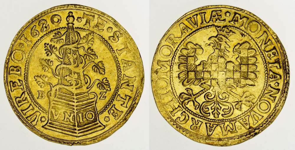 Mám jich tam celou řadu. Například mezi opravdové rarity tohoto období patří nepochybně desetidukát moravských stavů ze sbírky Rudolfa Justa (Sotheby´s v r. 2001). Tehdy se prodal za 30 tisíc liber, což byl zhruba dvojnásobek ceny prodaného pražského desetidukátu Rudolfa II., nebo pěti až desetinásobek ceny pražského desetidukátu Ferdinanda II. Osobně dnes pokládám tuto minci za absolutně nejdražší, která kdy byla v novověku ražena na českém území.