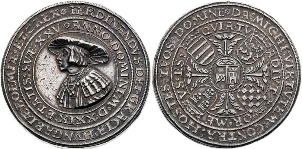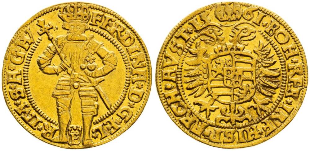 Z mincí Ferdinanda I. by měly být nejdražší pražský dukát s letopočtem 1547, který je na titulní stránce katalogu a dále unikátní pražský dukát se stojícím Ferdinandem, který je známý pouze v tomto jediném exempláři a nenachází se ani v nejvýznamnějších muzejních sbírkách. Sběratele jistě zaujme i pražský dukát mincmistra Konráda Sauermanna v excelentní kvalitě.