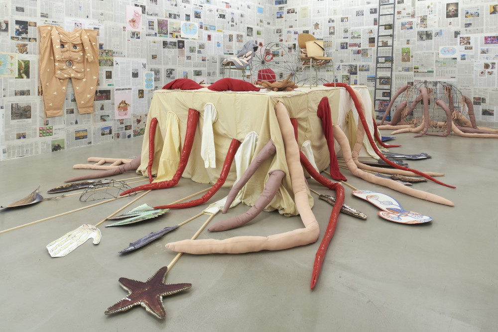 Z výstavy Evy Koťátkové Blankets, Monsters, Anna and the World (or How to prepare under the table for a violent world). Mayer Rieger, Berlín, 2022.