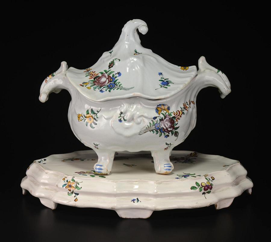 Nejzajímavějším kusem kolekce je fajánsová polévková mísa s víkem a podnosem z doby kolem roku 1770. Tato rokoková asymetrická forma teriny, jejímž auterem byl J.C. Rothe z německého Höchstu, se těšila ve své době velké oblibě, do svého výrobního programu ji převzala manufaktura ve Štrasburku a jejím prostřednictvím i císařský podnik v Holíči. Podobné kusy se nachází ve sbírce Huga Vavrečky v Uměleckoprůmyslovém muzeu v Praze, Moravské galerie v Brně a Iparmüveszeti muzea v Budapešti. Vyvolávací cena této položky je 30 tisíc korun.