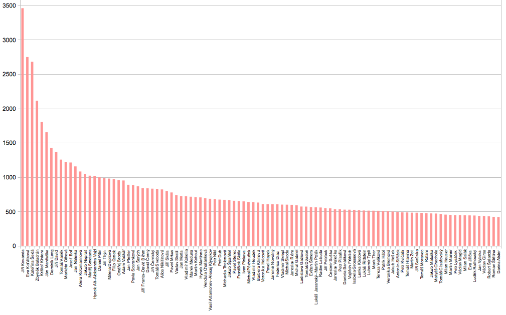Nejvyšší příčku již potřetí obhájil Jiří Kovanda a vzhledem k výši jeho bodového náskoku není pravděpodobné, že by jej v nejbližší době někdo vystřídal. Na druhou stranu je nutné dodat, že Kovanda rozhodně není autorem, který by žil jen z minulých úspěchů. Naopak, v loňském roce si připsal druhý nejvyšší počet bodů za výstavy. Víc bodů než on získala jen Eva Koťátková, která vystřídala Kateřinu Šedou na druhé příčce. Třiatřicetiletá Koťátková, která je laureátkou Ceny Jindřicha Chalupeckého za rok 2007, patří v poslední době mezi mezinárodně nejúspěšnější české umělce. Loni měla mimo jiné samostatnou výstavu na univerzitě MIT ve Spojených státech a v Praze se představila velkou výstavou v Prádelně Bohnice, která byla součástí její doktorské práce na Vysoké škole uměleckoprůmyslové.