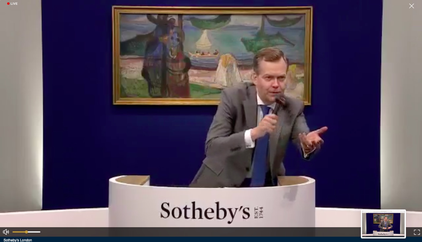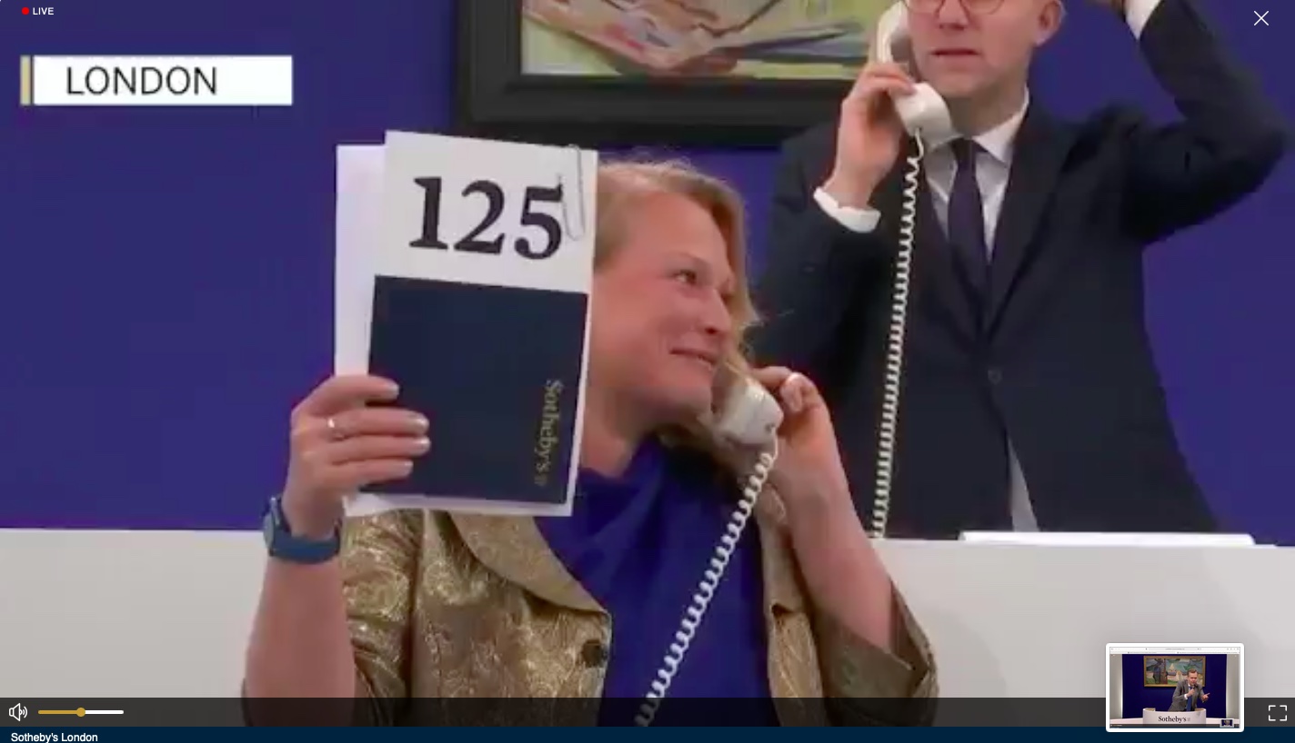 V závěrečné fázi šlo o souboj mezi Hugo Cobbem a Tessou Kostrzewa. Poslední Cobbův příhoz byl z 6,3 milionu na 6,35 milionu liber, přičemž licitátor mu povolil snížený příhoz ve výši 50 tisíc liber, místo standardních sto tisíc. Tessa Kostrzewa to téméř okamžitě přebyla příhozem na 6,4 milionu liber a za tuto částku byl obraz přiklepnut.