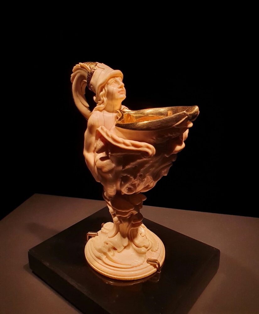 Oblibu inovativního zpracování luxusních materiálů mezi aristokratickými vrstvami připomněl pohár s groteskním maskaronem původem norimberského, od roku 1601 v Praze působícího řezbáře a výtvarníka Nikolause Pfaffa. Specialista na renesanční a barokní kabinety kuriozit, mnichovská galerie Kunstkammer Georg Laue, vystavovala mistrovské dílo řezby ve slonovině s odvážným, tzv. boltcovým/kwab ornamentem, tak typickým pro dekorativní manýrismus rudolfínského umění kolem roku 1600. V zákulisí veletrhu se spekulovalo o prodeji tohoto exkluzivního kusu do některého z prestižních evropských muzeí.