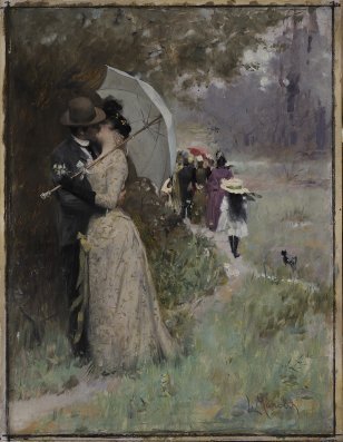 Dnes bychom chtěli upozornit na komorní olejomalbu Luďka Marolda Polibek, která by mohla snadno v katalogu plném zajímavostí zaniknout, jde však o jednu z nejcennějších a sběratelsky nejatraktivnějších autorových položek, které se zatím objevily na trhu. Olej na lepence, prodávaný s posudkem N. Blažíčkové - Horové, je prací restituovanou se sbírek Národní galerie. Za pozornost stojí už vzhledem k nízkému počtu dostupných Maroldových olejomaleb. Vyvolávací cena, která po započtení aukční přirážky už sama o sobě aspiruje na nový autorský rekord, odpovídá původu a významu díla. Vzhledem ke komornímu formátu se však může zdát postavena relativně odvážně.
