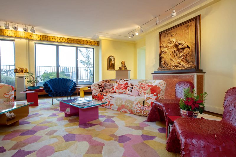 Interiér newyorského bytu Hester Diomondové, vpravo na stěně mramorový reliéf