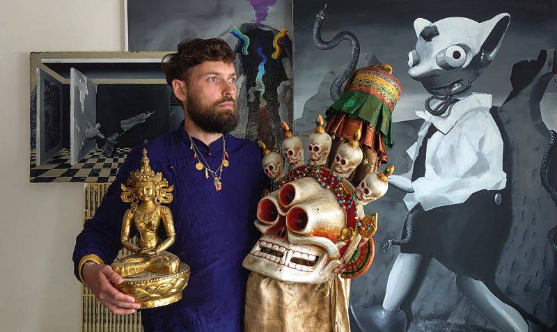 Jako umělec mám sbírání trochu snazší, protože vidím nejen ikonografii, ale i řemeslné umění. A dovedu ho lépe zhodnotit než třeba laik, který zná vše pouze z obrázků. Myslím, že stejně to měli i moji předchůdci, čeští umělci jako Filla, Neprakta, Drtikol, Kupka, nebo Adolf Hoffmeister. V rodinném životě je to někdy složitá situace, ale většinou mě podporují. Jedno z prvních slov mého syna bylo slovo „Buddha“.