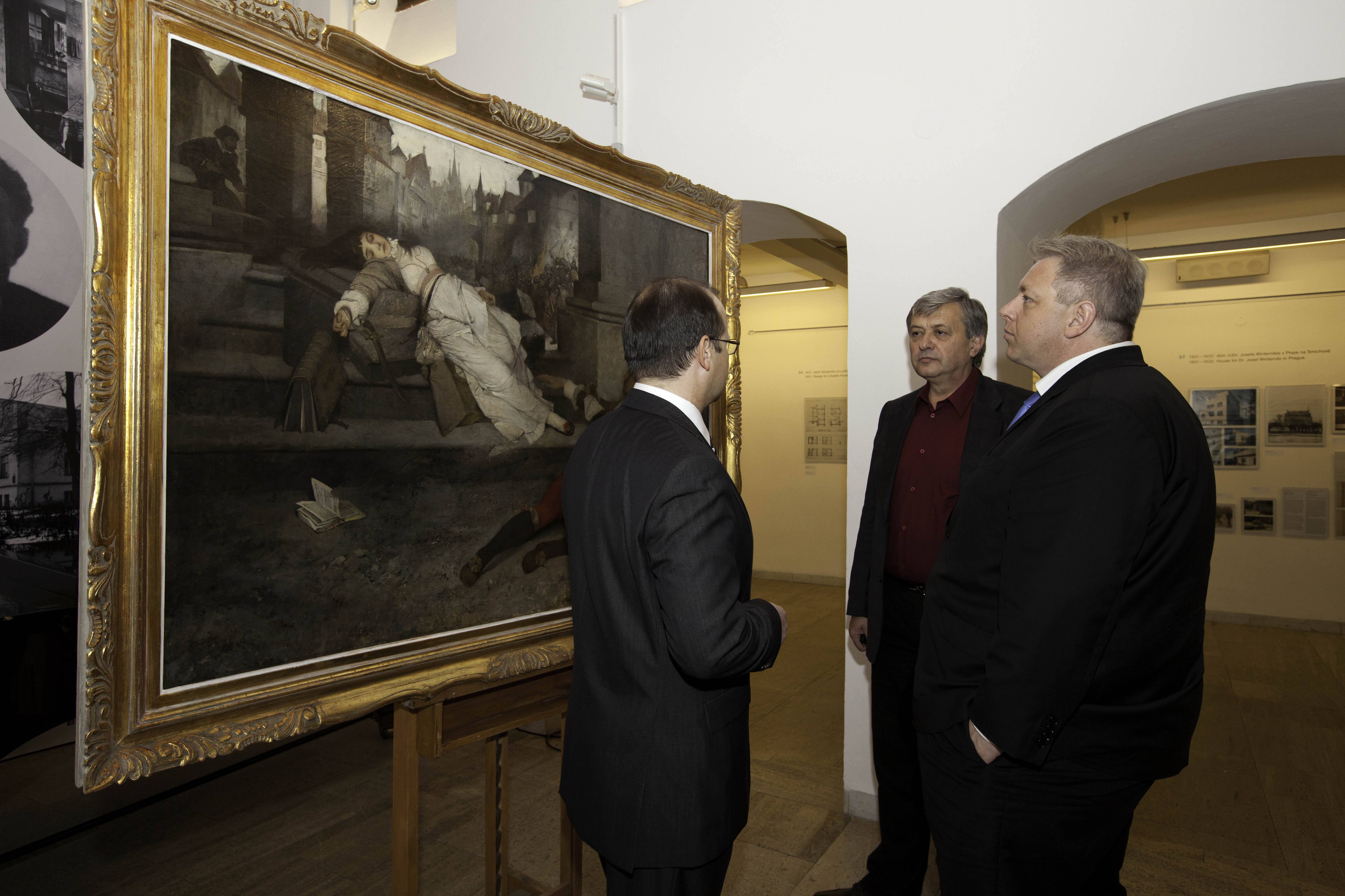 a Milan Chovanec před obrazem Václava Brožíka Ve smrti spojeni / 1875