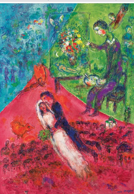 Zahajovací sólo patřilo dvaceti dílům Marka Chagalla z jeho osobního majetku, která se na uměleckém trhu objevila vůbec poprvé. Zájem o typické průzračné barvy a specifickou ikonografii zahrnující obrazy lásky, krajiny a domova byl stoprocentní, vyčísleno v librách za 9,8 milionu (přes 280 milionů korun vč. poplatků). Nejlépe si vedl více než metrový obraz Malíř a novomanželé ve třech barvách z posledního roku autorova života, který se prodal za více než 1,6 milionu liber. Ještě druhé motivicky podobné plátno Ženich, nevěsta a houslista ze 70. let se dostal přes 1,3 milionu liber, další čtyři položky nad 500 tisíc liber. Pokračování věnované Chagallovým tiskům a knihám probíhalo na on-line platformě do posledního červena.