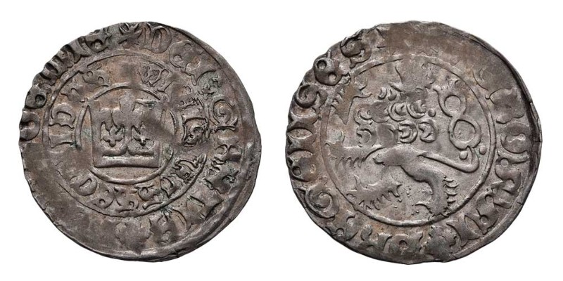 Jiří z Poděbrad byl jediný český král, který nepocházel z panovnické dynastie, ale z panské šlechty. Usiloval o pokojné soužití kališníků a katolíků podle Basilejských kompaktát. Pražské groše Jiřího z Poděbrad jsou o něco vzácnější než například groše Václava IV. a Vladislava Jagellonského a dosahují částek několika tisíc korun. Téměř v každé aukci se však vyskytne drobný peníz se lvem, který je možné vydražit za několik stokorun.