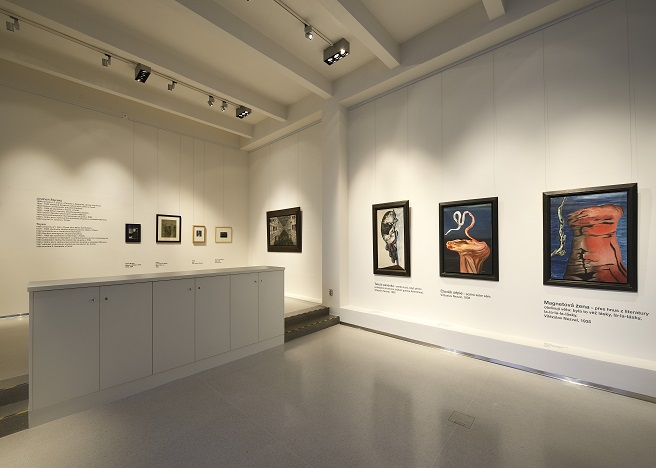 Ikonicky známá díla českých surrealistů Člověk sépie Jindřicha Štyrského nebo Magnetová žena Marie Čermínové - Toyen budou již od zítřka k vidění v pražském Mánesu. Komorní výstava představí díla ze sbírky paní Géraldiny Galateau z Paříže a připomene 80. výročí první surrealistické výstavy v Československu, která se konala v lednu a únoru 1935 na témže místě.