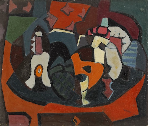Endre Nemes: Zátiší se zvířecí maskou a lahví / 1935