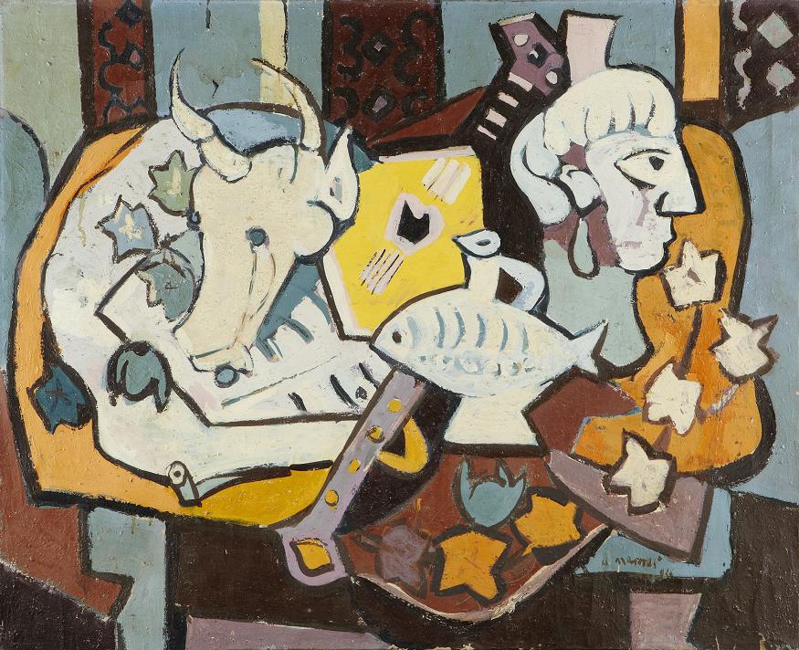 Endre Nemes: Zátiší s býčí hlavou a bustou / 1936