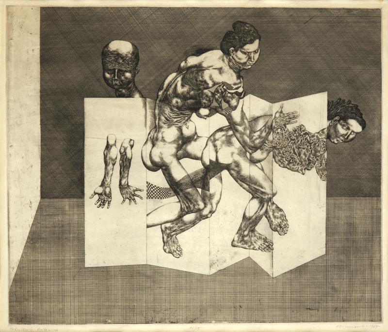Albín Brunovský: Pokušení sv. Antonína / 1965 / lept, ocelorytina 17/25 / 42,5 x 49 cm