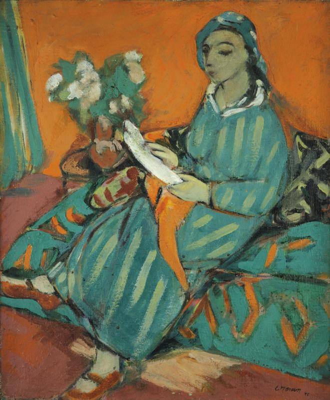 Evžen Nevan: Čtenářka / 1940 / olej na plátně / 58,5 x 48 cm