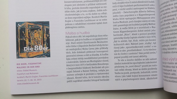 Hlavními materiály zářijového čísla jsou rozhovor s historikem umění Eduardem A. Šafaříkem, který v létě zemřel v Římě ve věku 87 let, obsáhlý profil česko-slovenské sochařky Marie Bartuszové, která dnes patří mezi mezinárodně nejúspěšnější osobnosti zdejšího poválečného umění, nebo pozvánka na výstavu Zbyňka Sekala, která je až do půlky února k vidění v Muzeu umění Olomouc.