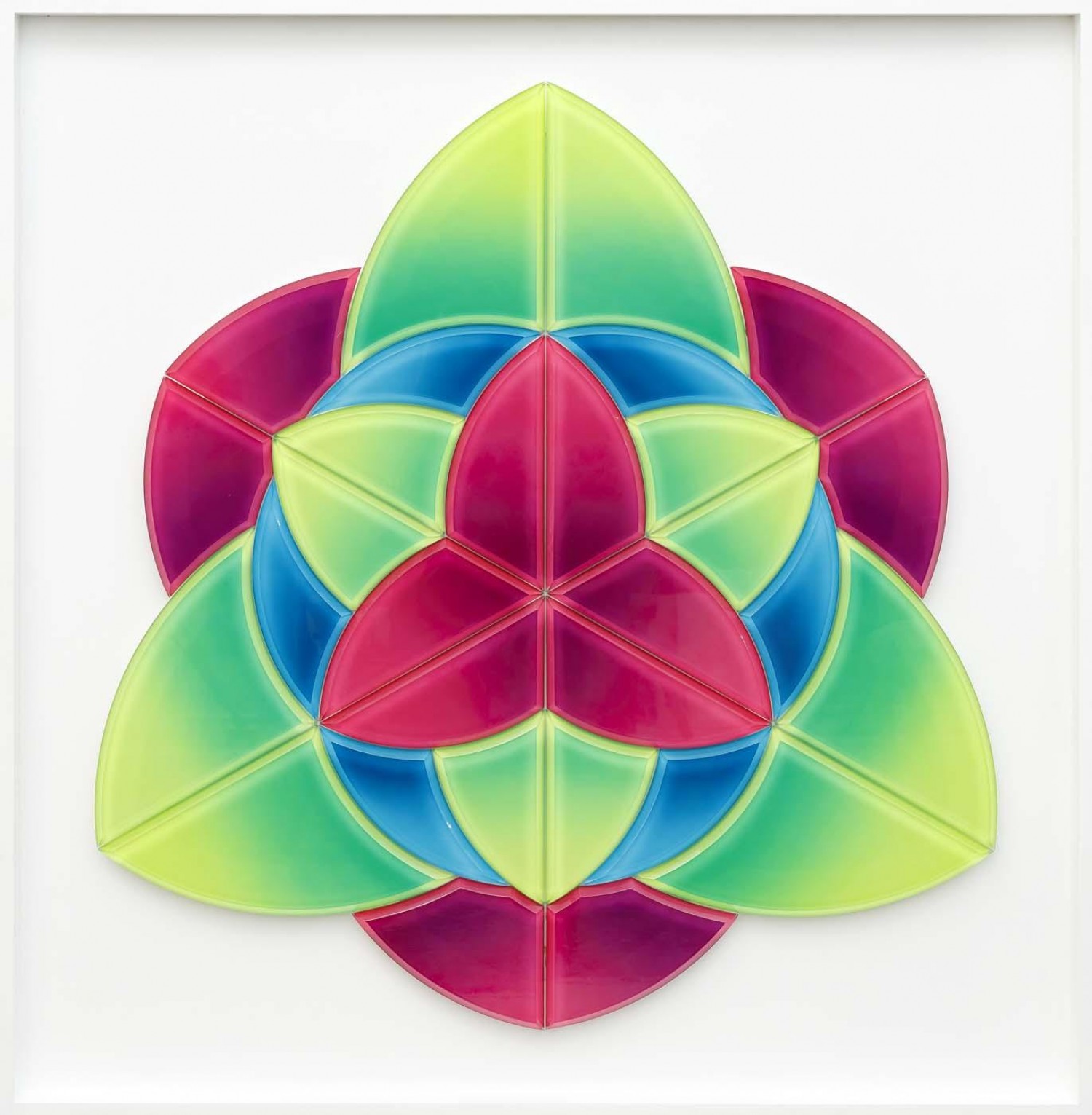 Letos teprve druhá nabídka Kalábových realizací se na první pohled podobá jeho na trhu nejžádanějším dílům: jasně barevný velký formát v duchu geometrické abstrakce s 3D až op-artovými efekty, zpochybňujícími podstatu dvourozměrné malířské podložky. Materiálově je však více než metrový Kaleidoskop ojedinělý. Původně streetartový výtvarník spojil síly s ateliérem sklářských tvůrců Kolektiv z Nového Boru a v loňském roce vytvořil objekt z oboustranně stříkaného skla. Vyvolávací cenu (300 tisíc korun) nasadili pořadatelé o něco výše než v minulých letech (průměrně 200 tisíc korun), dražební odhad 400 až 600 tisíc korun byl překonán bohatě. Výsledných 960 tisíc včetně provize znamenalo nárůst o 320 % oproti základu a téměř dvojnásobně přesáhlo i nabídky zahraničních galeristů (například Castanier Gallery Miami). Práce Jana Kalába, které s objevily na tuzemských aukcích byly jen za první pololetí oceněny na více než 1,2 milionu korun.