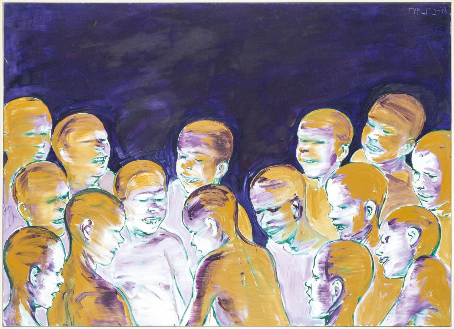 Osmou pozici v rámci nejvyšších prodejů současných umělců obsadil dvoumetrový akryl na plátně osmačtyřicátníka Lubomíra Typlta. Aktivní výtvarník se zkušenostmi z českého i německého uměleckého provozu do svých figurálních obrazů vkládá silné, až expresivní emoce, umocněné intenzivní a významotvornou barevností. Vyznění námětů může být někdy kritické, někdy groteskní, někdy poetické, vzdáleně připomínající energii české surrealistické moderny. Motiv dětského „skupinového portrétu“ zpracovával Typlt opakovaně v desátých letech nového milénia, v dubnu dražený obraz je signován a datován do roku 2013. U 1. Art Consulting byl nabízen jako Bez názvu, autor jej ve svém portfoliu vede jako Koncilium IV ze stejnojmenné série. Uspěl za slušných 348 tisíc korun, čímž vyrovnal své čtyři roky staré dražební maximum, a potvrdil stoupající tendenci pohybu Typltových děl na aukcích. Jen v loňském roce se na trhu s uměním objevila jeho díla desetkrát.