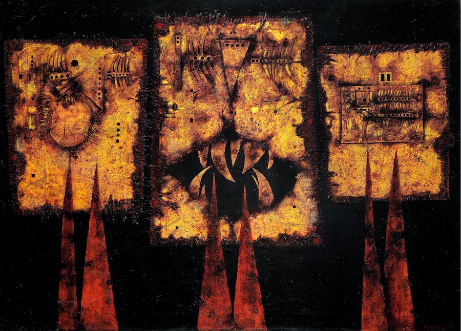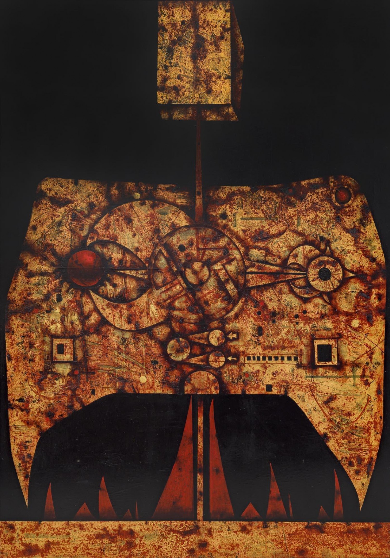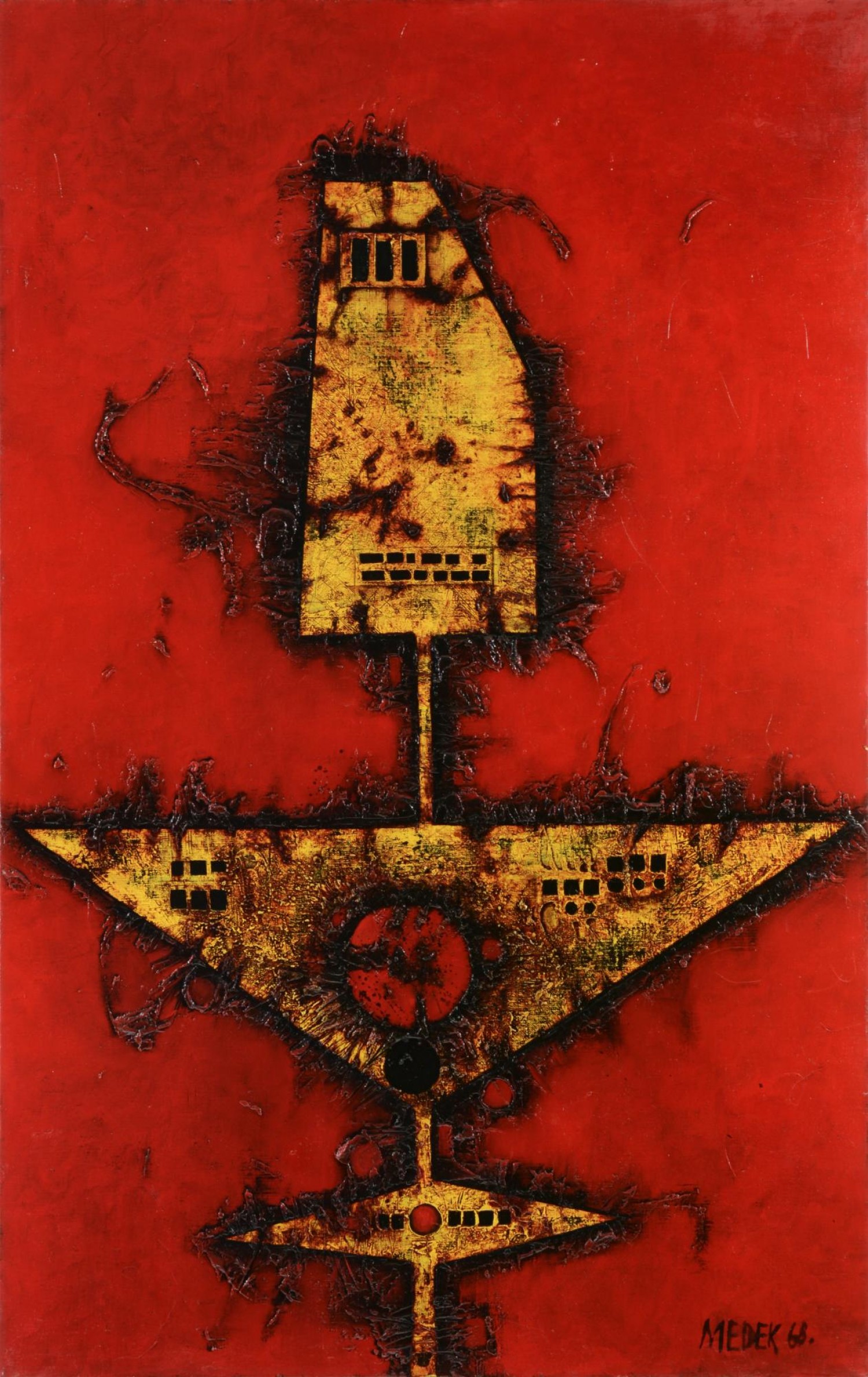 Mikuláš Medek: Žal čtvrtého inkvizitora, 1965,  olej a email na plátně, 130 x 180 cm, Bonhams 13. 10. 2022,  cena: 731 000 GBP (bez DPH a dalších poplatků)