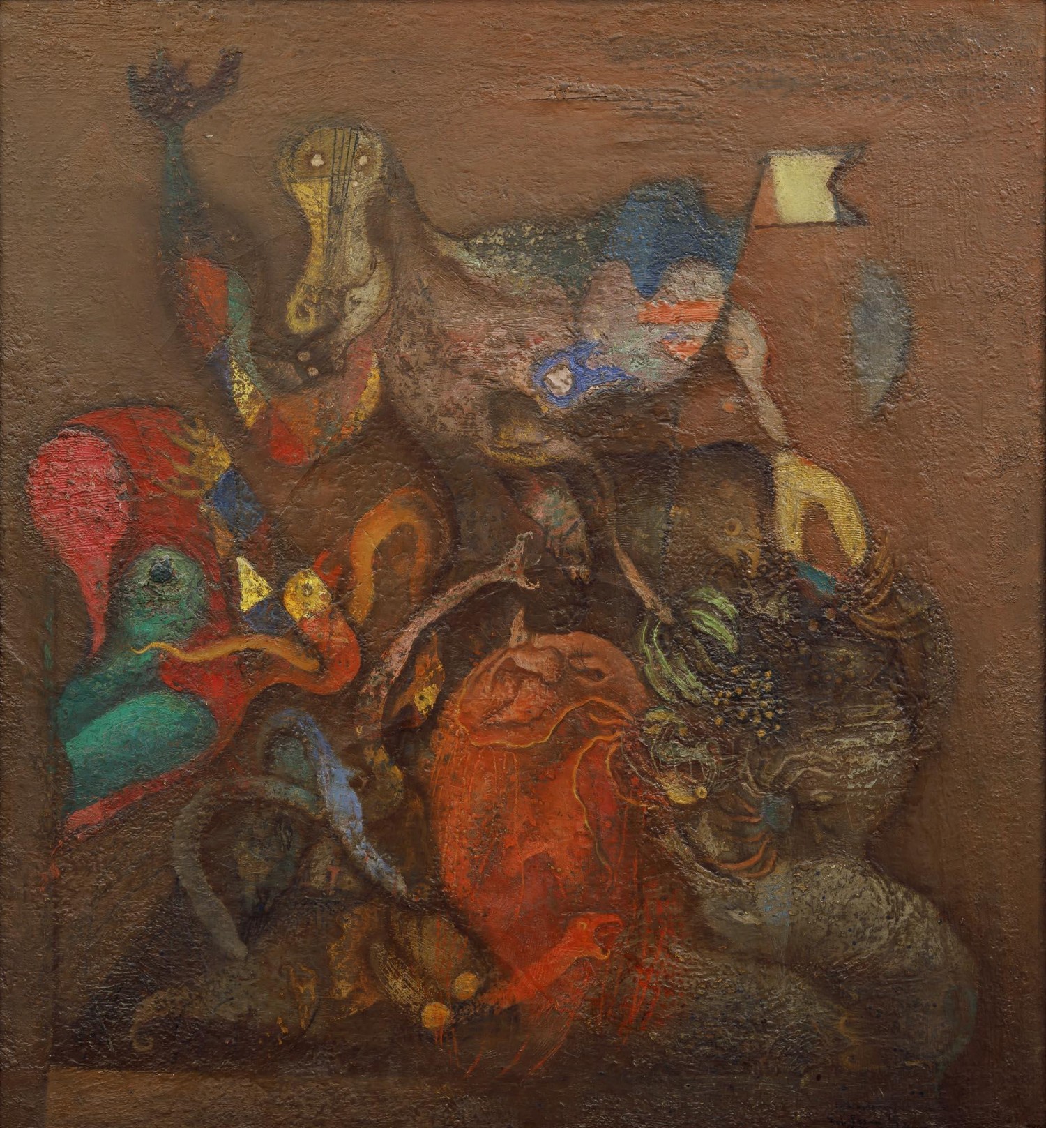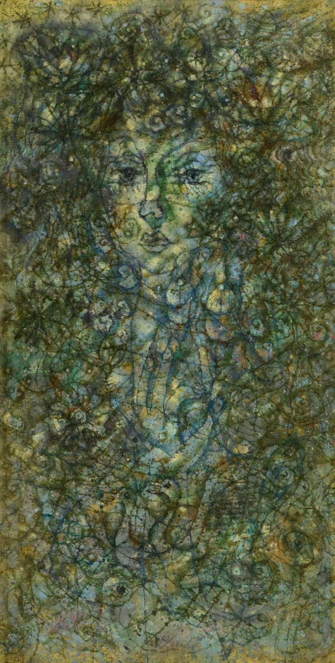 Mikuláš Medek: Anděl zlých ptáků I, 1972, Kombinovaná technika, 170 x 120 cm, Galerie Kodl 27. 11. 2022, cena: 14 400 000 Kč