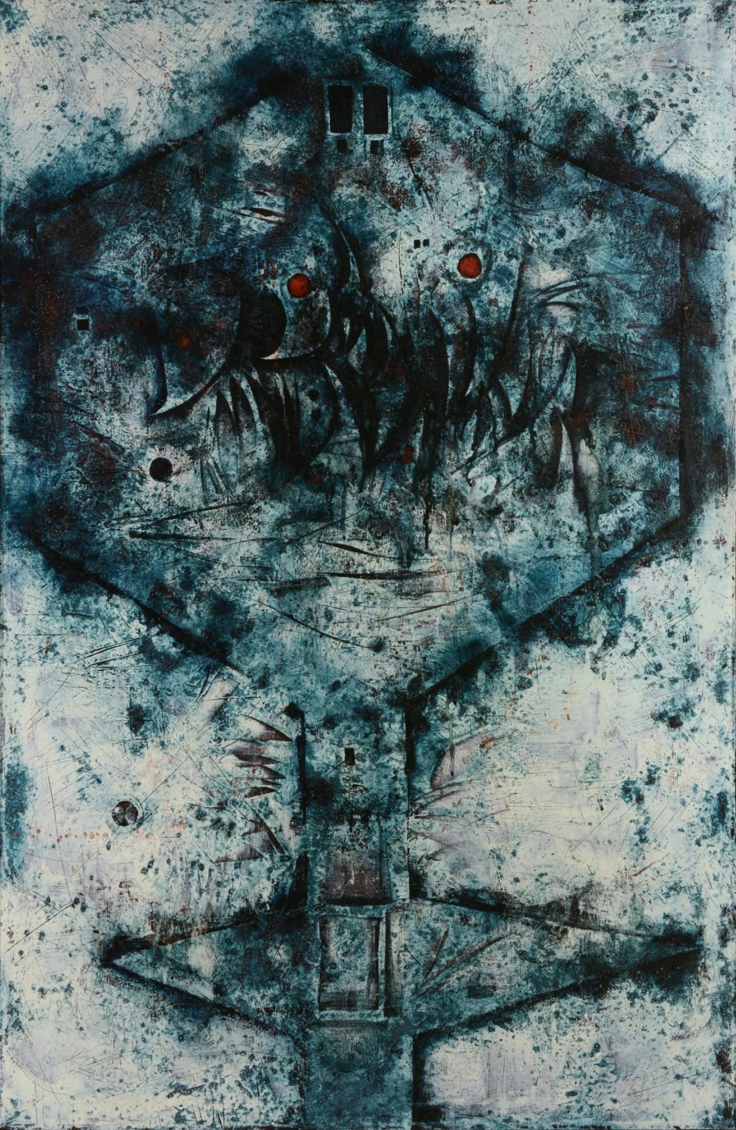 Mikuláš Medek: Malý modrý nudný (též smutný) obraz, 1966, kombinovaná technika, 130 x 85 cm, Aukční dům Zezula 28. 5. 2022, cena: 6 960 000 Kč
