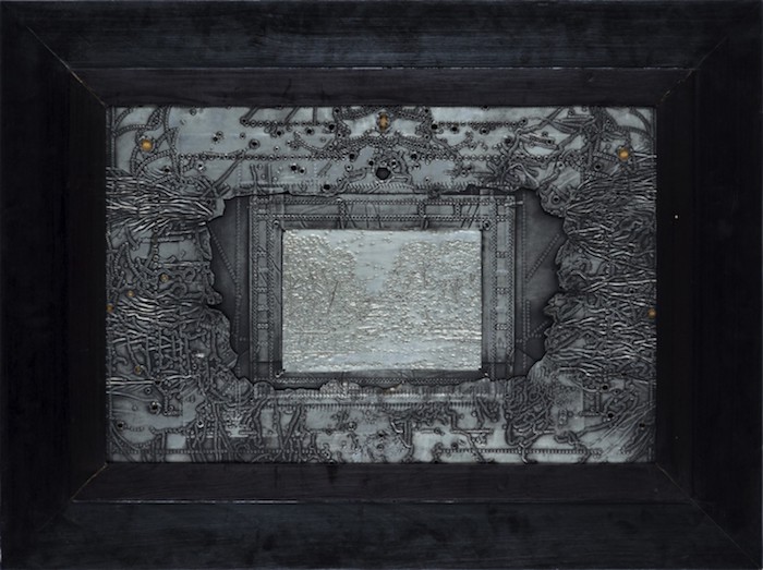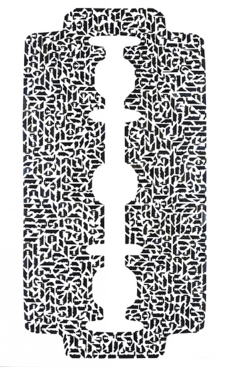 asambláž z žiletek, 90 × 56,5 cm,