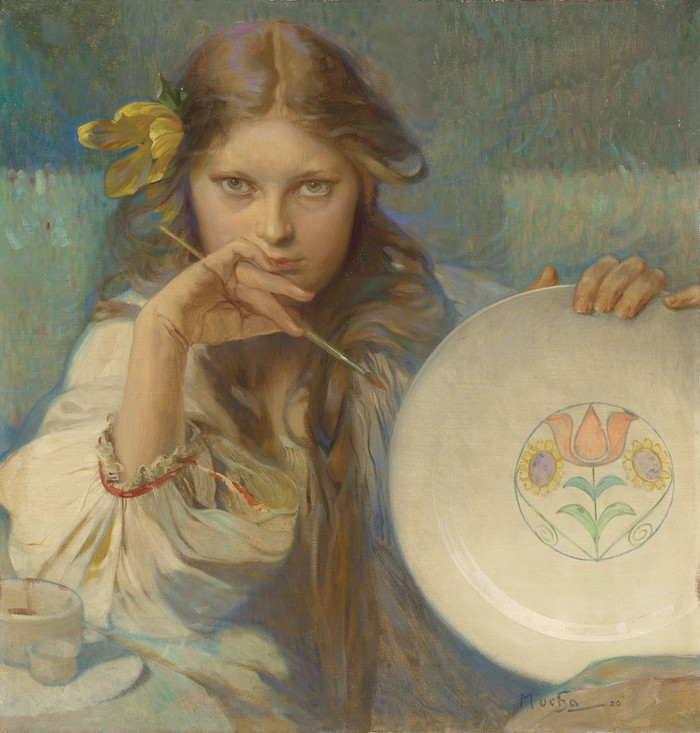 1. Alfons Mucha: Dívka malující lidový motiv, 1920,