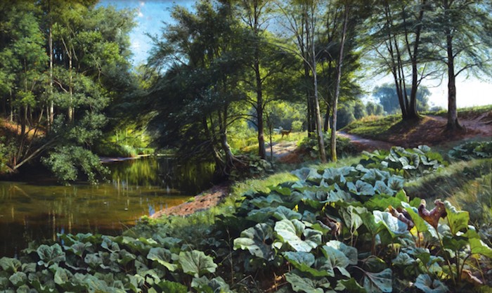 Peder Mork Monsted: Krajinné zátiší na řece, 1911, olej na plátně, 120 x 200 cm,