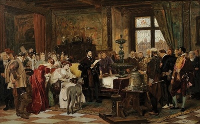 VÁCLAV BROŽÍK: CÍSAŘ FERDINAND I. PŘIJÍMÁ UMĚLCE NA PRAŽSKÉM HRADU / 1899