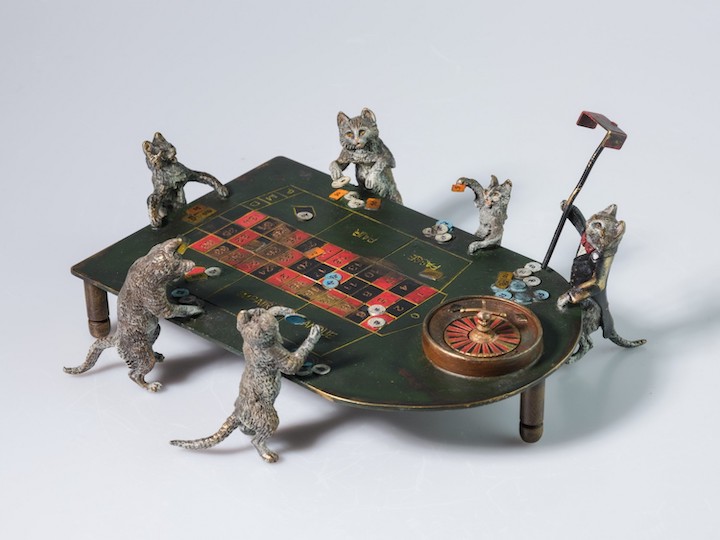Nejdražší nabízenou položkou je půl metru vysoká stolní lampa ve formě arabského obchodníka odpočívajícího spolu se svým velbloudem ve stínu palem. Za 50 tisíc korun je nabízena drobná soška Sebevědomý slon s kly z pravé slonoviny. Vysokou vyvolávací cenu má například také miniaturní sousoší Kočky pokoušející své štěstí při hře rulety