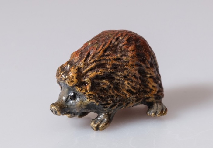 Vykulený ježek, kolorovaný bronz, 1 x 2 x 1 cm,